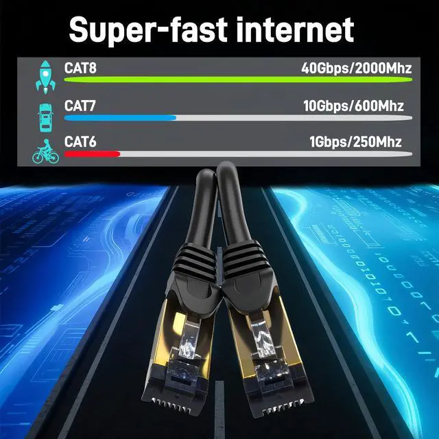 Cat 8 Ethernet Cable 6FT-50FT 26AWG Ethernet Cable - 2000MHz, Gold Plated RJ45. Heavy Duty, Weatherproof F/FTP, UV Resistant for Router, Modem, PC & Gaming (Indoor/Outdoor) (30FT-CAT8)