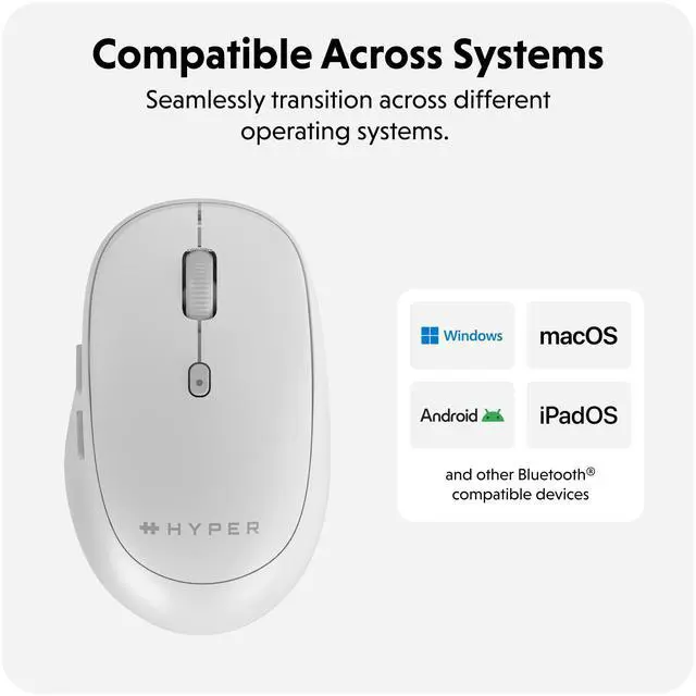 Hyperspace Wireless Mouse Bluetooth 5.0 Ergonomic Wireless Mouse w/Adjustable Sensitivity, Fast Switching, Compatible w/MacOS, Windows, Chrome OS Pair Up to 3 Devices