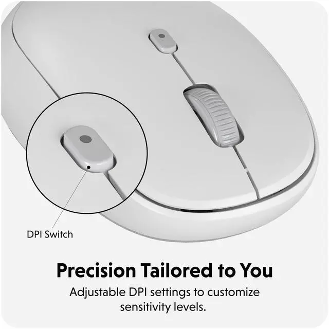Precision at Your Fingertips: From pixel-precise design work to responsive gaming, this bluetooth wireless mouse features adjustable DPI (dots per inch) settings for customized sensitivity and smooth trackingall the control you need at your fingertips.