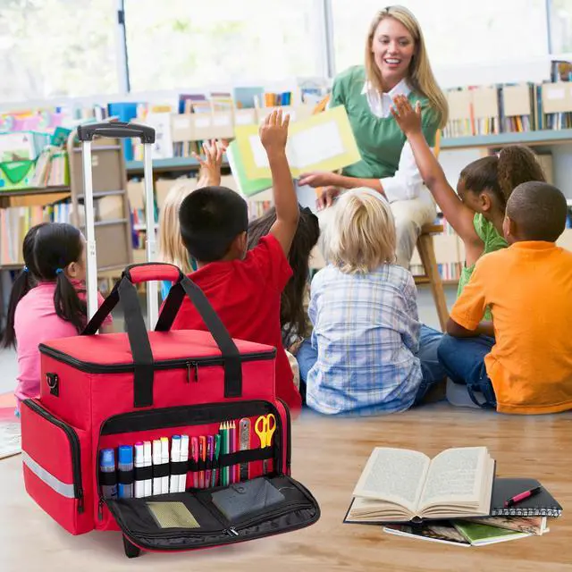 CARRYING OPTIONS: Features with padded handle, shoulder strap and telescoping handle (NOTE:up to 34.2), make it convenient to transport your teacher supplies from one plac