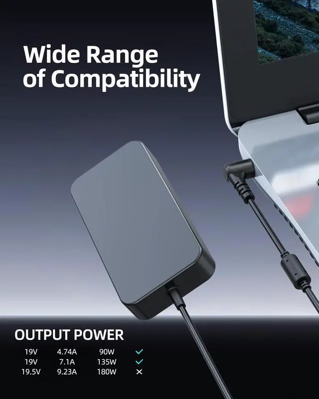 Universal CompatibilityFit for Acer Nitro 5 Gaming AN515-51 AN515-52 AN515-53 AN515-54 AN515-55 AN515-56 AN515-44 AN515-43 AN515-42 AN515-41 AN515-31 AN517-51 AN517-52 N18C3 N18C4 Laptop [It won't charge your laptop if it needs power over 135W].