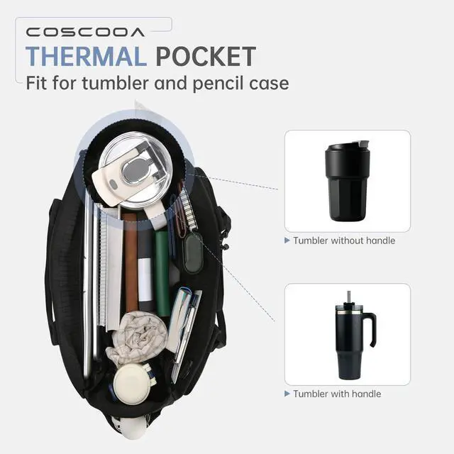 17 Pockets & Compartment for Well Organized:This work bag featuring 17 intelligently designed pockets to make everything organized. Includes 1*15.6inch laotop compartment;1*12.9 tablet compartment;1 large main compartment;4* inner mesh pockets;2*Insulated Pockets,2 *side pocket,5 *front pockets;1* back zipper pocket.Securely store your laptop, tablet, notebooks, A4 documents,pens, cables, lunch, and more. Everything has its perfect place, making your daily routine seamless and efficient.