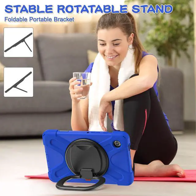PboyiqiS Case for Galaxy Tab A9 8.7" 2023 (SM-X110/ X115), Heavy Duty Protective Case with 360 Degree Swivel Stand&Hand Strap&Shoulder Strap (Blue)