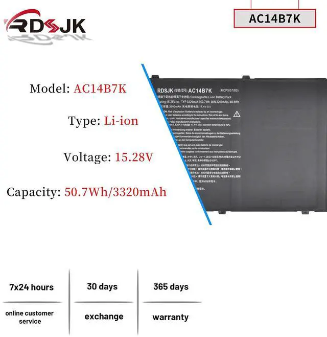 AC14B7K Laptop Battery for Acer Swift 3 SF313-51 SF314-51 SF314-52 SF314-55 SF314-55G SF314-56 SF314-56G Spin 5 SP515-51N SP515-51GN Nitro 5 AN515-41 AN515-42 TravelMate P236 TMP236 Series 50.7W h