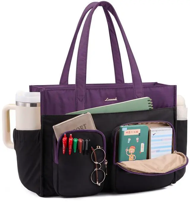 LOVEVOOK Teacher Tote Bag for Women, Multi-pocket Laptop Bag with Large Cup Holder, Nurse Bags Work Briefcase Computer Purse Handbag for Business Office College Travel