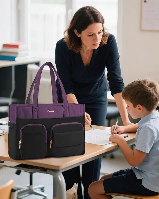 Teacher-Approved Organization: The teacher laptop tote bag for women features a large zippered compartment, two zippered pockets, a magnetic-flap quick-access pocket, and a large slip pocket. Perfectly sized to store markers, red pens, calculators, mini staplers, rulers, sticky notes, snacks, rewards, stickers, bandages, and morekeeping your core teaching tools handy while helping you care for your class and manage your instruction.