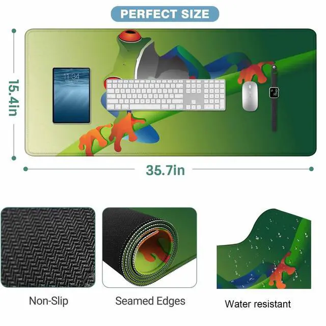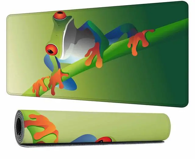 Y YIHANGBEST A Frog Green Branch Mouse Pad for Desk Round Red Eyes Blue Limbs Orange Tinted Feet Large Gaming Mousepad for Home,Office,Computer,Keyboard Mat 35.4"X15.7"
