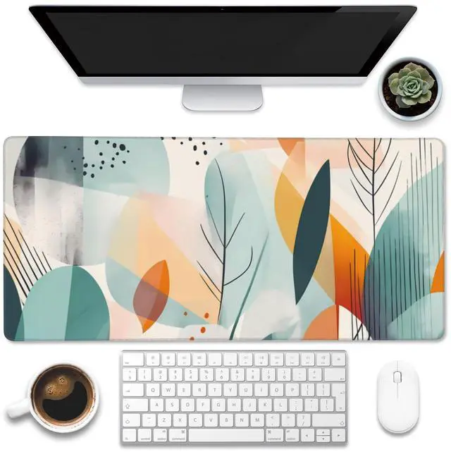 Eflxamz Desk Pad,Abstract Colorful Leaves Desk Mat,Abstract Line Art Large Gaming Mouse Pad for Desk,Extended Big Computer Keyboard Mouse Pad with Non-Slip Base and Stitched Edge,35.4"x15.7"