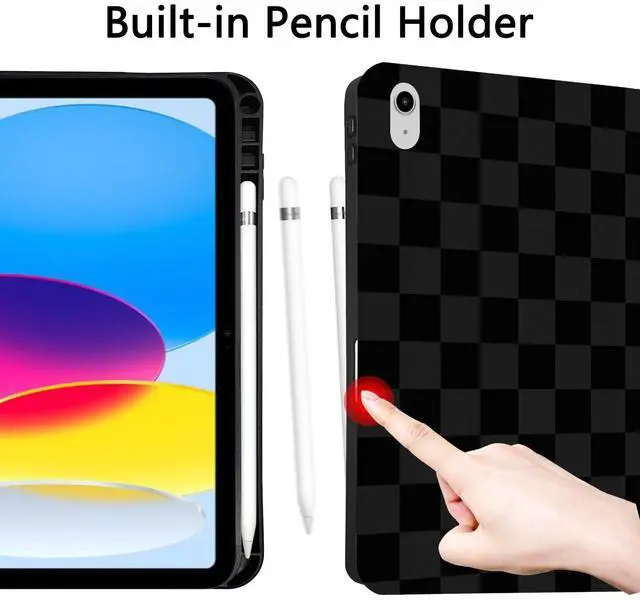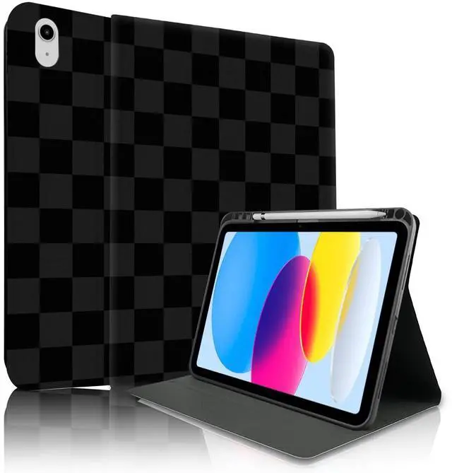 TopPerfekt Case for iPad 11th (A16) 11-inch 2025 / iPad 10th Generation 10.9 -inch 2022, Pencil Holder Anti Slip Shockproof for Kids, Female, Male, Plaid Cute Chic Checkered Series - Black