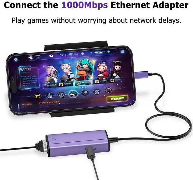 Ethernet Adapter: 1 Gigabit network + charging interface, plug and play, easy to use, fast and stable connection, no software driver required.