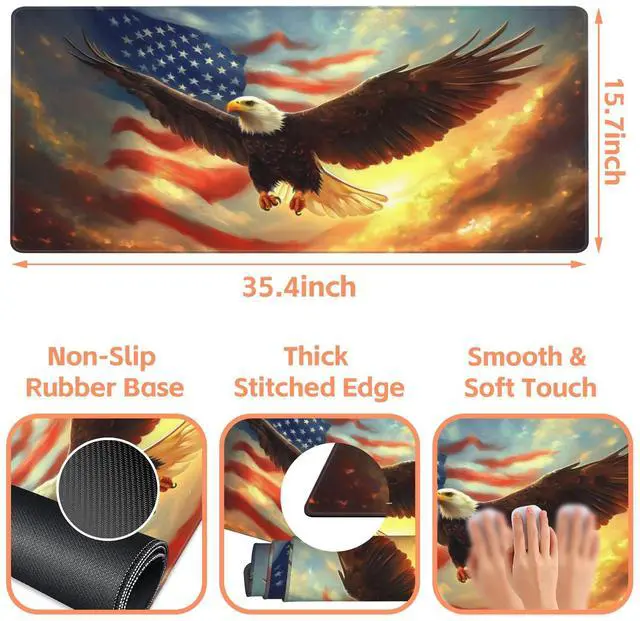 NIYLYNSYN Large Mouse Pad an Eagle in Flight Extended Gaming Keyboard Desk Mat Non-Slip Rubber with Stitched Edge Desk Pad Suitable for Office Home Desktop Decoration (35.4 x 15.7 Inches)