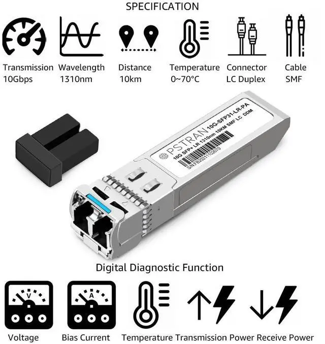 the 10GBASE-LR SFP+ Optical Transceiver Module supports up to 10km link lengths over LC duplex SMF fiber. Max. Power Consumption 1W Allowing for Prolonged Service Life, Commercial Temperature Range 0 to 70C (32 to 158F) ^^ Tested in Targeted Switches for Superior Performance, Quality, and Reliability. We owns compatibility LAB facilities to meet the EEPROM coding and writing requirements with various brands of the latest and advanced networking equipments to ensure the compatibility. ^^ Real Time Digital Optical Monitoring Capability for Strong Diagnostic Capabilities ^^ TO Package Features High Reliability and Robust Physical Protection.