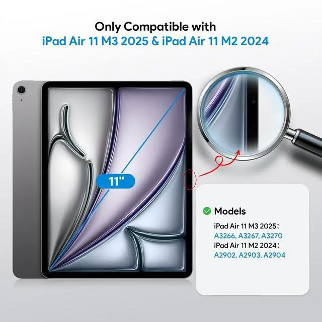 Attention: This is not compatible with iPad A16 11th / 10th Generation (2025/2022), iPad Pro 11 2025/2024, iPad Pro 11 (2022 & 2021 & 2020 & 2018) and iPad Air 5th & Air 4th Generation( 10.9 inch) ^^