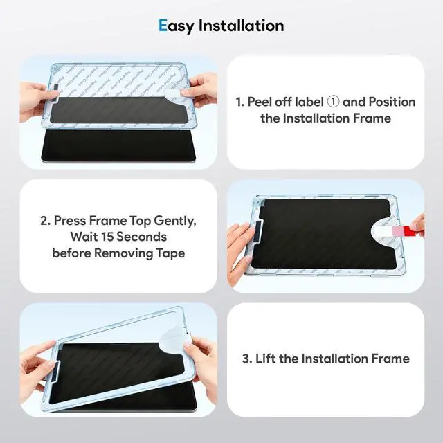 Easy Installation: Our ipad air 11 inch screen protector features a custom installation frame design. Simply pull the tab to automatically expel air bubblesachieving a smooth, bubble-free installation in moments ^^