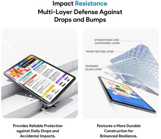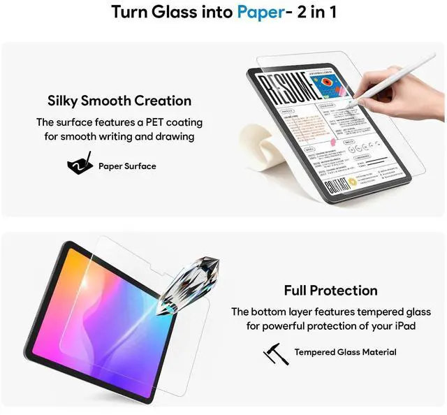 Two-in-One Advantage: Combining the strength of tempered glass with the natural feel of a paperfeel film, this ipad air 11 screen protector delivers both impact protection and a fluid writing experience. Great for digital artists, note-takers, and frequent travelers who need reliable screen safety ^^