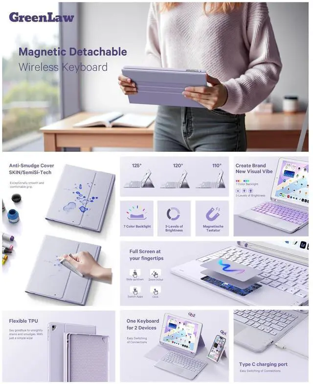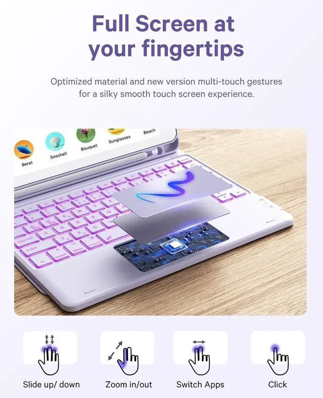 ^^ Multi-Touch Trackpad: Equipped with a smart touchpad that can accurately control and navigate, realize the combination of tablet and computer functions, and enjoy an excellent notebook experience. Control your iPad 5th Gen. at multi-gesture. Edit documents, browse the web, and build presentations with unparalleled speed, bringing you the convenience of high productivity. Navigating even the most complex workflows has never been easier.
