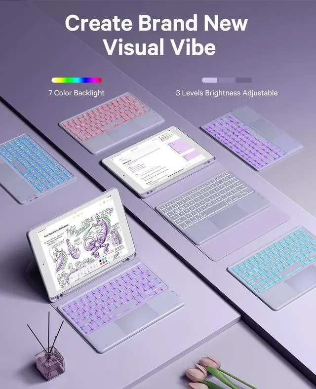Color Backlit: Easily switch between 7 gorgeous colors and 3 brightness with a simple touch. You can adjust the keyboard to your favorite color according to your preferences, and easily make your iPad 6th generation case with keyboard more stylish. It is also convenient for keyboard operation under dim light, and it can also bring you a different visual enjoyment and comfortable typing experience with your iPad.