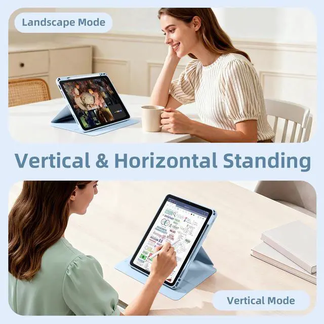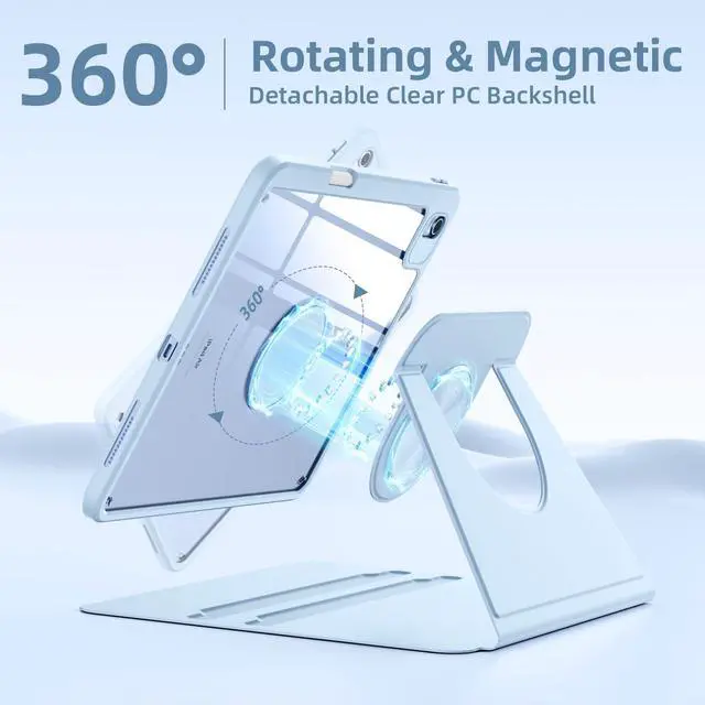Generation(2024/2022/2021/2020/2018)(Model: A2228/A2068/A2230/A2231/A2377/A2459/A2301/A2460/ A2759/A2435/A2761/A2762). NOT compatible with iPad Pro 11 inch M4/M5 2024/2025 release ^^ 360 Rotating & Detachable Strong Magnetic Back360 rotating design, which can stably support your iPad whether in a portrait or landscape stand mode in various angles with two anti-slip deep grooves. Designed with a detachable clear backshell, you can remove the cover if you don't need it, very flexible and convenient ^^ Build-in Pencil Holder & Support Pencil Pro / Apple Pencil 2nd Gen Wireless ChargingThis case has a slot for Apple Pencil Pro / Apple Pencil 2nd generation. You can carry your pen with your device wherever you go without worrying about losing them. It's also easy to remove the