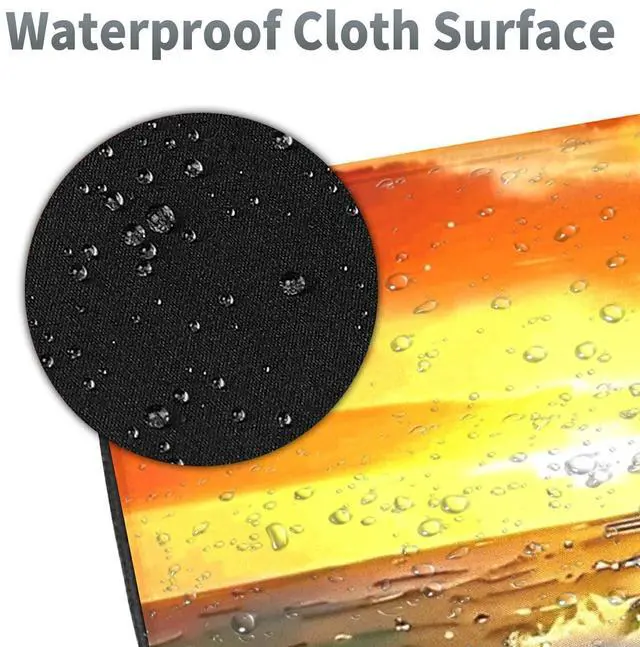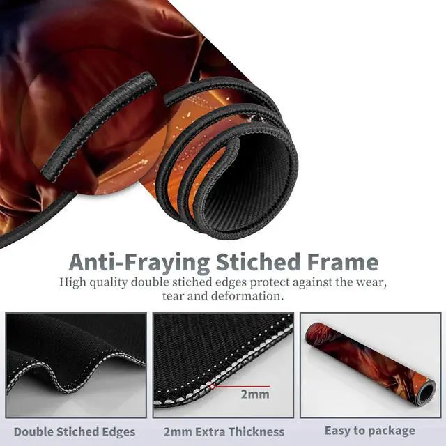 ^^ Natural Rubber Base The soft and dense non-skid nature rubber base keeps this oversize desk pad firmly in place. This long mouse mat remains uniformly flat even over imperfect surfaces. Just immerse your work or games without worrying about the annoying mouse pad movement. ^^ Edge Banding Desgin The full desk mouse pad Sewing frame ensures no friction or sagging. The edge trim design prolongs the service life and prevents the narrow top strip from leaving the base. Reinforced edges prevent deformation or damag ^^ Washable Design Desk Pad A spill-proof coating makes liquids slide right off the surface.
