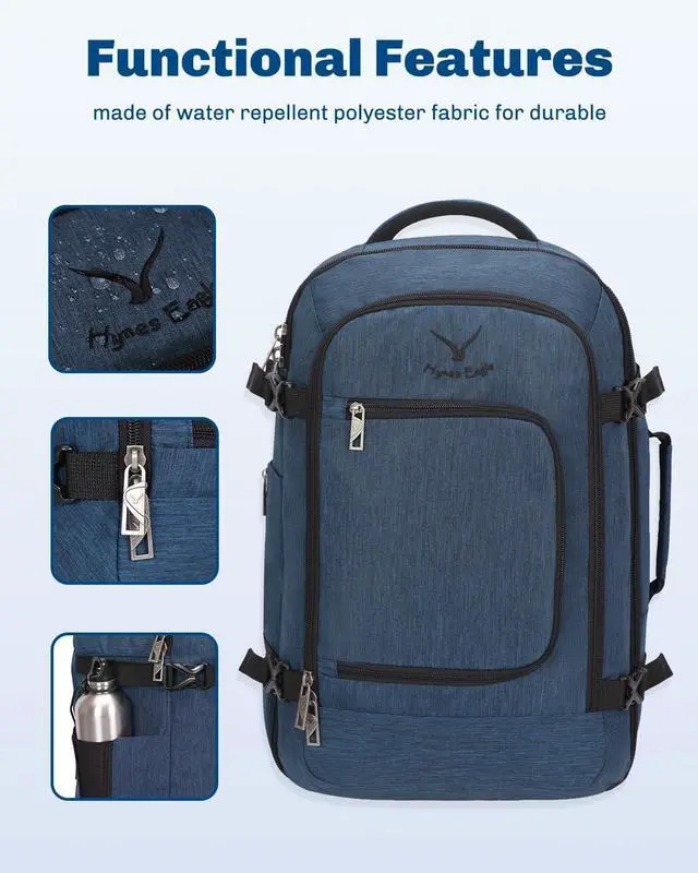 Flight Approved Sizemade of water repellent polyester and 210D polyester lining, the carry on bag fits the allowed maximum size of most IATA flights and can also fit in the overhead compartment, 40L carry on backpack Approx.