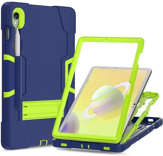 Meifei Case for Galaxy Tablet S9 FE & S9 2023 (SM-X710/X718U/X716B/X510/X516B), Soft Silicone & Hard Pc 3-Layer Military Protector Cover for Tab S9 11" with S-Pen Holder Stand case Navy Blue