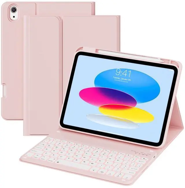 Adjustable 7-Color Backlit KeyboardThis ipad 10th generation case with keyboard features laser-engraved backlit keys that glow in 7 vibrant colors in the dark. Typing with backlighting is more enjoyable and easier. Ergonomic mechanical scissor keys with a rebound function reduce noise, easy attachment a