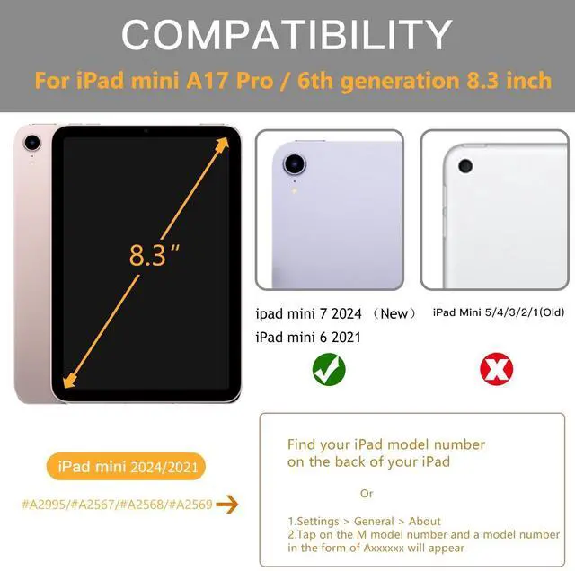 Compatibility: Only designed for iPad Mini 7th/6th Generation Case 2024/2021 8.3 Inch.