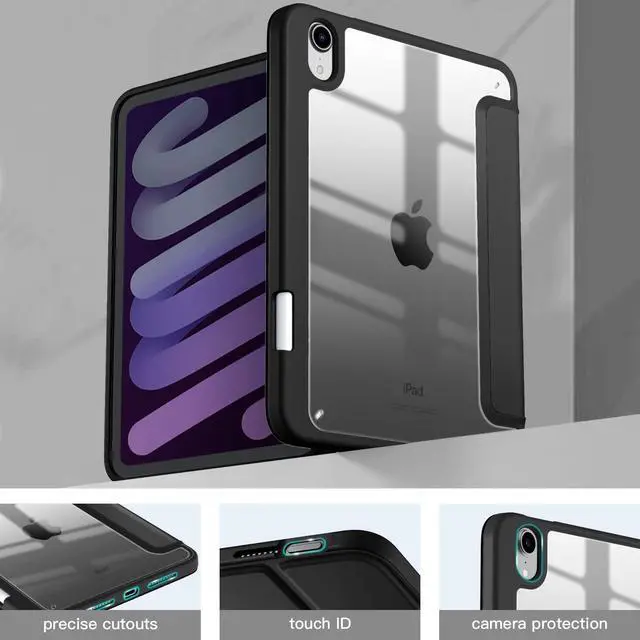 ^^ Full Protection: Combined durable PU exterior, soft TPU frame with crystal clear back(non-yellowing), and enhanced corners to protect your iPad mini A17 Pro from accidental damage.