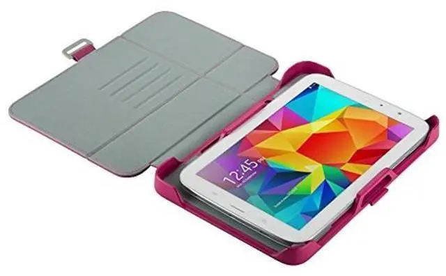Speck's StyleFolio FLEX cases - universal tablet cases with true security and protection. Available in two sizes, for 7- 8.5 inch tablets, and for 9- 10.5 inch tablets, StyleFolio FLEX fits and is compatible with multiple Android and Apple tablets. StyleFolio FLEX features an innovative adjustable bracket system to securely hold your tablet in place, while allowing easy installation and removal when needed. StyleFolio FLEX has a one-piece chassis with raised corner walls to provide strategic protection along with a soft, anti-scratch microfiber lining to prevent abrasions. The open yet protective design allows complete accessibility to ports and sensors.