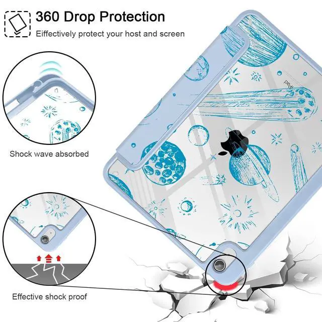 Model: A2757 A2777 A2696. Premium MaterialThe clear transparent back shell is made from durable polycarbonate material, and keeps iPad slim and lightweight in the same time. Multi-pattern ChoiceThe unique patterns created by the designer make your iPad unique and fashion, a perfect gift to your friend or family. Smart CoverProvides auto sleep/wake function with built-in magnetic strip. Trifold Stand CoverFeaturing a tri-fold design, the case stands at the perfect angle for typing and viewing, convenient for daily life and work like watching TV, reading, documents editing, etc. Precise CutoutsNecessary cut-outs for speaker, lighting port, camera and flash, easily access to all buttons without remove the case. PLEASE NOTEColors shown in pictures may slightly differ from actual product due to lighting and color settings. Package include 1 Pack clear Alec Protective Case for iPad 11 inch (A16 chip ) 11th Generation 2025 / iPad 10.9 inch 10th Generation 2022.
