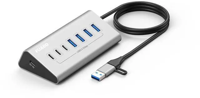 Expand your device's connectivity with this versatile 7-port USB hub featuring both USB-A and USB-C ports. This sleek aluminum multiport adapter delivers impressive 10Gbps data transfer speeds, making it perfect for modern devices including the latest iPhone series, MacBooks, and iPads. The thoughtfully designed hub includes 4 USB-A ports for legacy devices and 3 USB-C ports for newer technology, allowing you to connect multiple peripherals simultaneously. Its premium aluminum construction not only provides durability but also helps with heat dissipation during intensive use. The compact design makes it an ideal travel companion while maintaining full functionality.