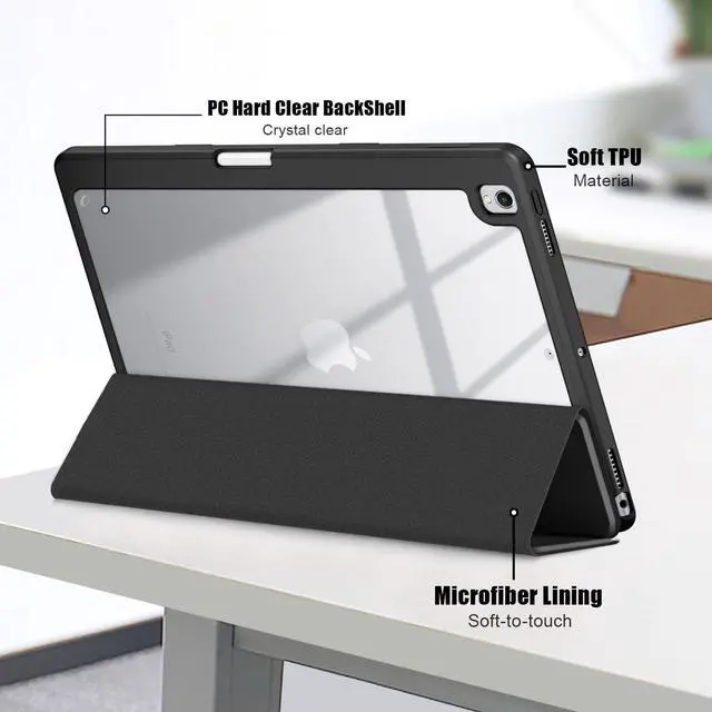 UUcovers Product Features: 1. Stand feature, the tri-fold book folding case to combine stand-up slots and folding design, which are great for viewing, reading, typing, etc. 2. Sturdy PU/faux leather material that is resistant to moisture and stains, protect your tablet screen and back body. 3. Soft and non-scratch microfiber interior and soft TPU bumper design, extreme protection against shock, scratches and dirt. 4. Magnetic smart case, Support auto wake /sleep function, powering it on/off up on open and closing. 5. with pencil holder, Unique stylus pen slots, pencil holder are inside and it will not lost. 6. Magnetic closure can keep front cover firmly closed, protect your tablet screen safe. 7. Ultra thin and lightweight design, clear back case, which is comfortable to hold, allows a full-screen view. 8. The precise cutouts provide easy access to all buttons, ports, and features of your device, without removing the case. 9. Screen & Camera Protection, The raised bezel on the front and back cover provides protection for your screen and camera.