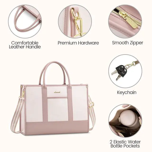 ^^ Versatility Meets Convenience: Crafted for versatility, this laptop tote bag effortlessly transitions from a professional work bag for women to a chic shopping bag or a practical teacher bag. The detachable and adjustable shoulder strap adds to your comfort and style, allowing you to carry your essentials with ease, no matter where you go.