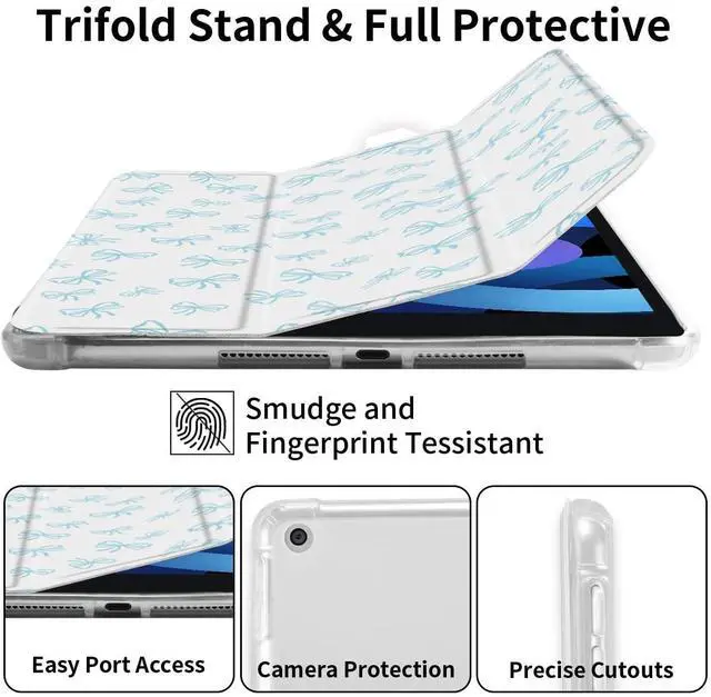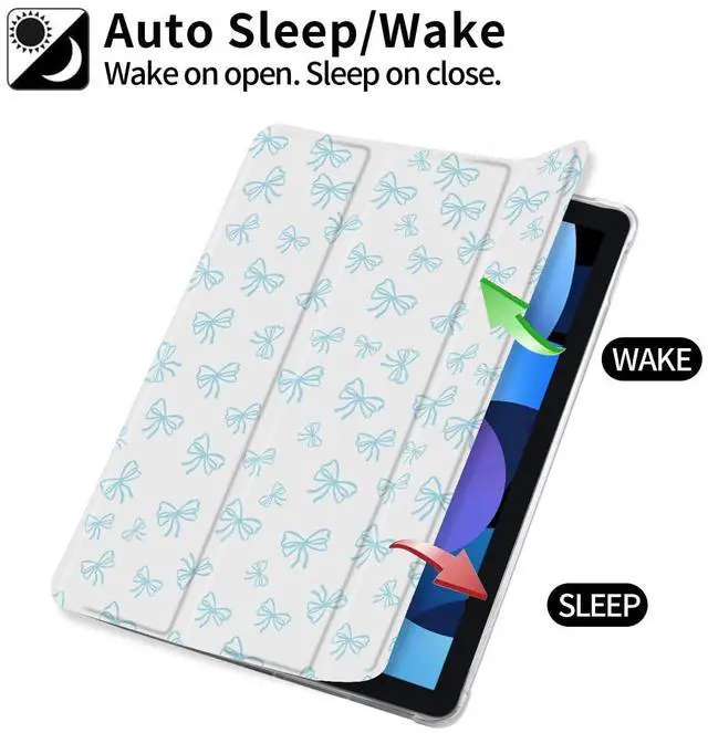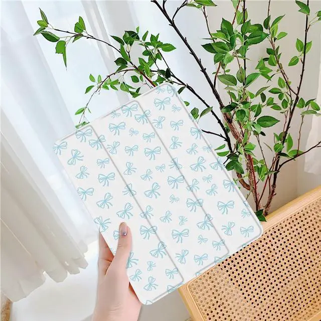 Idocolors Cute Bowknot Pad Case for 10.9 Inch iPad 2022/2025, Clear TPU Smart Stand Back Cover with Pencil Holder, for iPad 10th/11th Generation Auto Wake/Sleep Foldable Protective Case