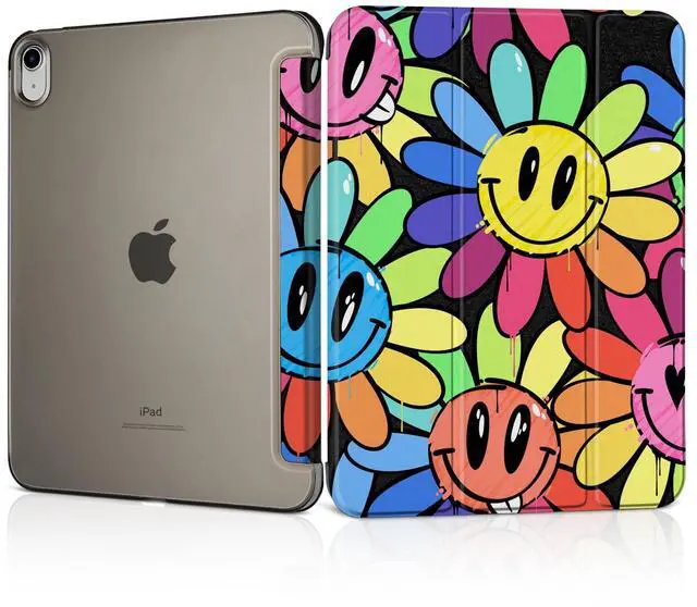MEEgoodo for iPad A16 11th Generation Case 2025 11 inch, Tablet Cases for iPad 10th Generation 2022, Tablet Cover with Silk Texture & PC Clear Back Cover, Graffiti Smiling & Flowers