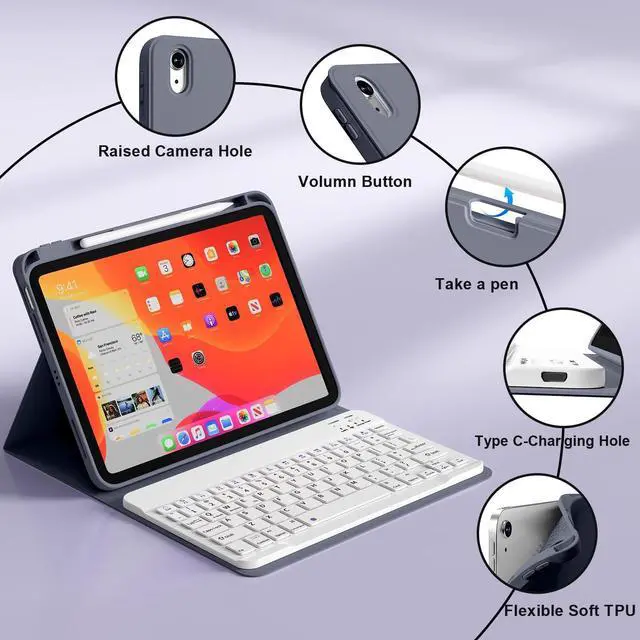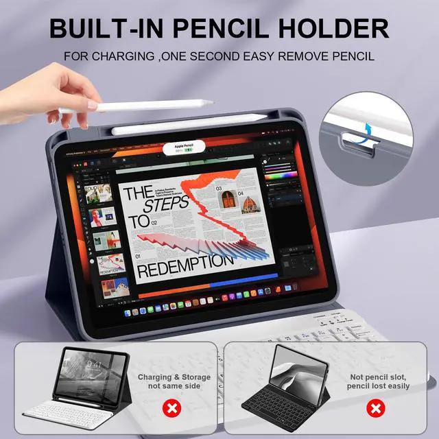 Right Side Pencil Holder]: The iPad Air 11-inch Keyboard Case has a convenient built-in pencil slot on the right side for charging, easy storage and access to your pencils. Effectively prevents falling, reducing the possibility of losing your pencil (Apple Pencil not included).