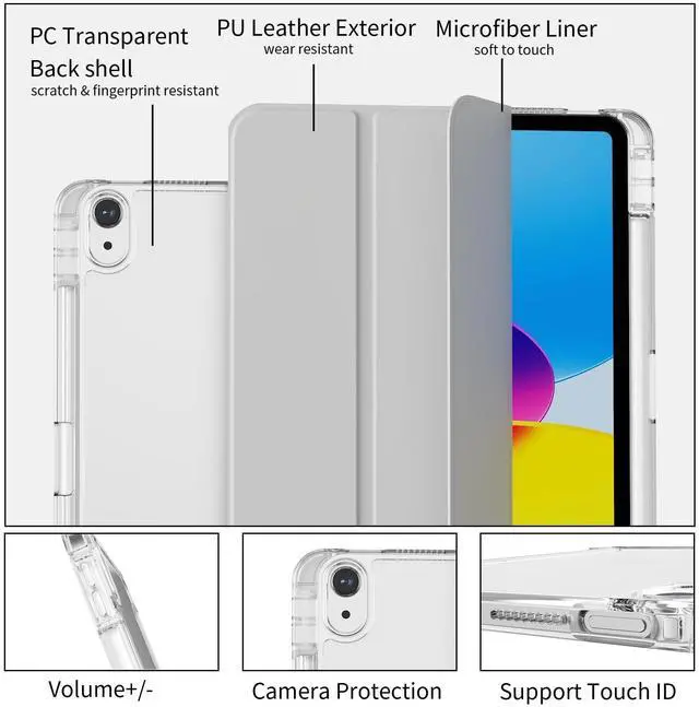 Trifold Stand Cover: Featuring a tri-fold design, the iPad 10th gene