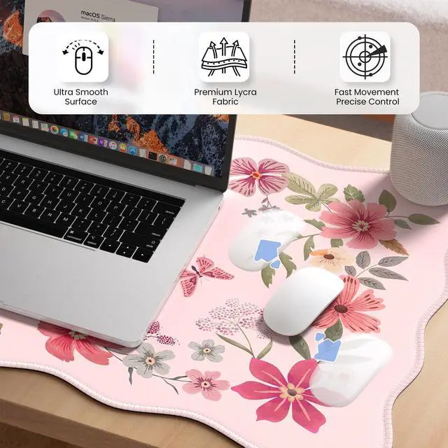 Elegant Wave-Shaped Design: This floral desk mat features a unique wave design, breaking the monotony of traditional rectangles. Its dense edge stitching adds durability and a refined touch, making your workspace both functional and artistic ^^ Generous