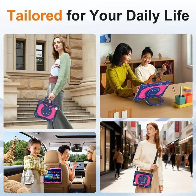Pro/MiniImpact protection: The three-layer structure uses 2 times more shock-absorbing materials than the basic shell; The 2mm reinforced frame increases durability and slightly increases weight; Including 0.5 mm screen protector filmMulti angle function: 360 rotating bracket, multiple positions, used for video calls, notes or viewing; Removable shoulder straps during commuting; Anti slip hand straps are fixed when working outdoors; Special pencil holder for hiking/transportationDurability testing: Laboratory validated resistance to over 5000 simulated drops; Enhanced dust cover to protect internal components; Texture anti slip grip supports continuous use for more than 5 hours; Verified to be suitable for parenting, outdoor work, and creative workflows.