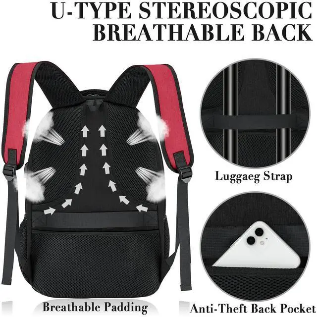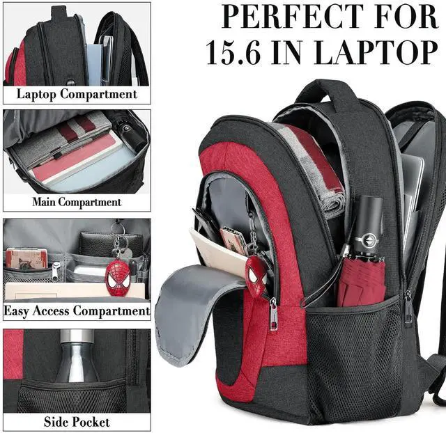 Travel Laptop Backpack for Woman and Men, School Backpack for Teens with USB Charging Port, Waterproof College Back Pack for 15.6 IN Laptop Backpack, Adult Business Computer Travel Backpack, BlackRed