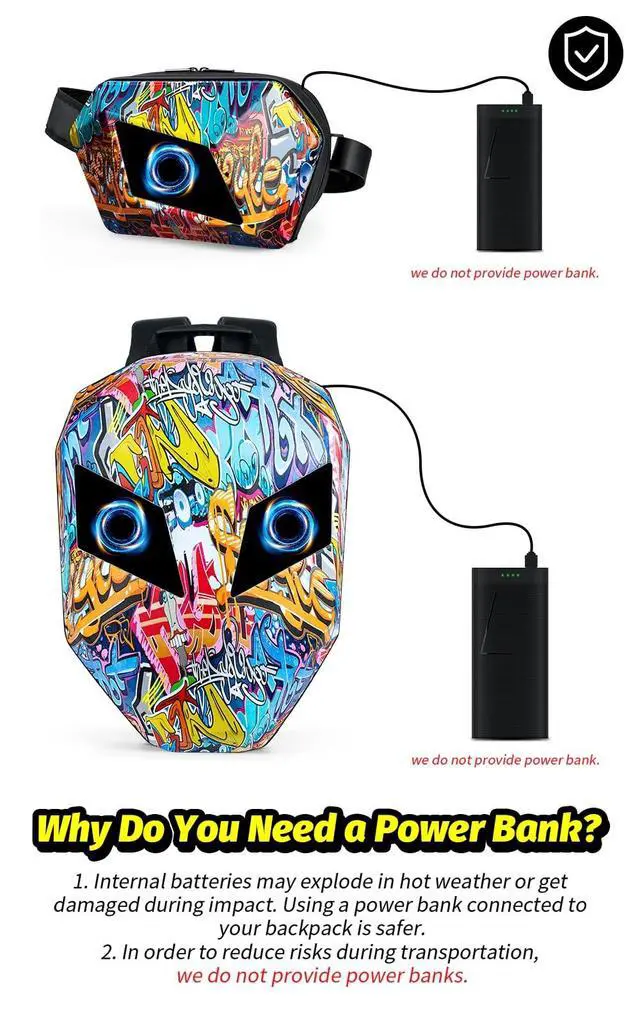note: The backpack does not include a battery. To light it up, you simply connect your own power bank (portable phone charger) to the built-in USB port. This gives you flexible and long-lasting power! ^^ Unboxing Tip!