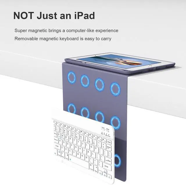 Support 3 System&Full Shortcut Keys- The magnetic wireless keyboard can be removed from the case freely. Compatible with iOS, Android, Windows. Just press Fn and corresponding keys(QWE) to change the keyboard system. Hot keys Customized for iPads, Full Shortcut Keys give you a more efficient way to use your keyboard.
