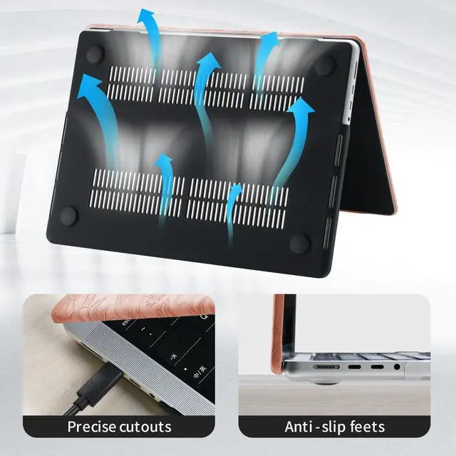 STAYING COOL & DURABILITY: The bottom shell has two rows of vent holes and raised rubber feets for accelerate air circulation to achieving maximum heat dissipation. 4 rubber feets also provide stability and a non-slip grip, keeping your MacBook Air 13 inch 2019 in place, safer and more stable in use. The retro leather mac book air 13 case takes into account both durability, portability and protection, suitable for using in school, office, business trip or outdoor use