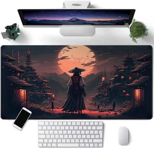 Japanese Landscape Desk Mat Post Moonlight Samurai Mouse Pad Large Dark Aesthetic Desk Pad Gaming Mousepad Extended XXL 31.5 x 15.7 in Laptop Computer Mouse Keyboard Mat