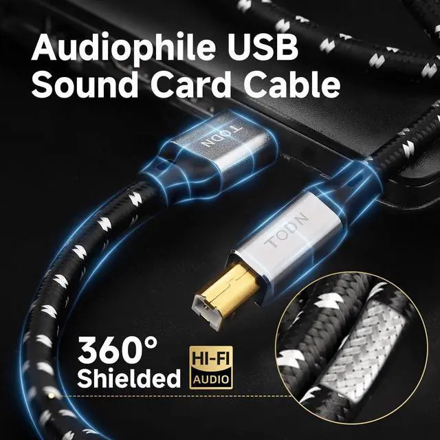 Powerful Bass: TODN AG-Series HiFi USB A to USB B feature 4-core OFC conductor that delivers strong bass and rich details, like heavy bass in electronic music. And 4-strand core increase the total surface area of conductor that improves high frequency performance more effectively than 2-core. Ideal for audiophiles who like powerful music, such as electro, rock and more! After 48 hours of burn-in, the signal transmission of the USB B is smoother and faster, perfect for computer to DAC/sound card ^^