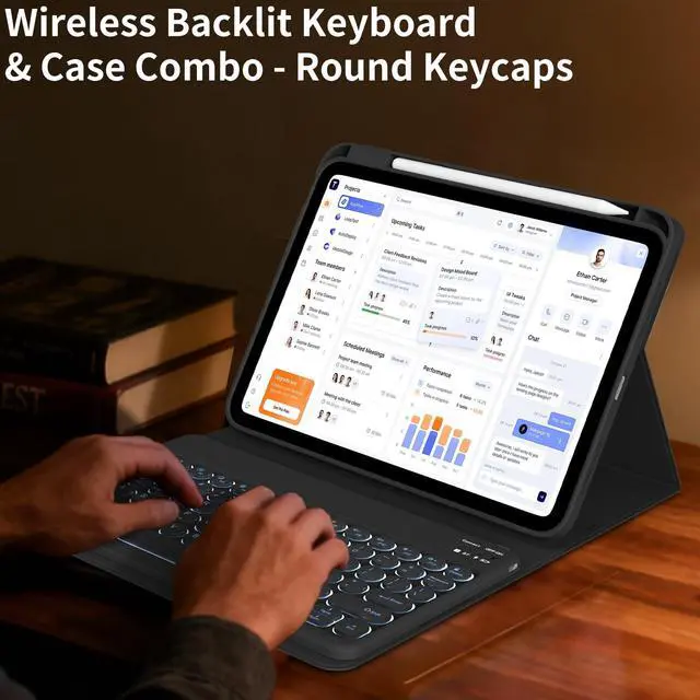 • Magic Detachable KeyboardFor ipad(A16) 11th/ 10th generation. 11/10.9inch Keyboard case is magnetic and keyboard can be strongly attached to the case or detach completely. When you do not need the keyboard can be stored away, easy to carry it on the go. Equipped with useful shortcut keys keyboard is easy, fast and stable to connect via BT, reconnect immediately turning it on.