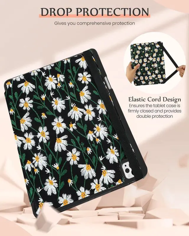 Card Slots & Auto Sleep/Wake: This embroidered tablet case has two card slots for bank cards, business cards and other cards. Built-in magnetic strip, this for iPad Pro 12.9 (2022/2021/2020/2018) & Air 13 case has an auto sleep/wake feature, no wasting the power energy and extend your tablet standby time ^^
