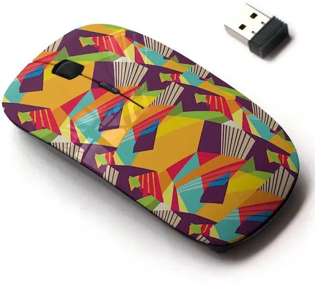 2.4G Wireless Mouse with Cute Pattern Design for All Laptops and Desktops with Nano Receiver - Decorative Geometric Mosaic Pattern Design