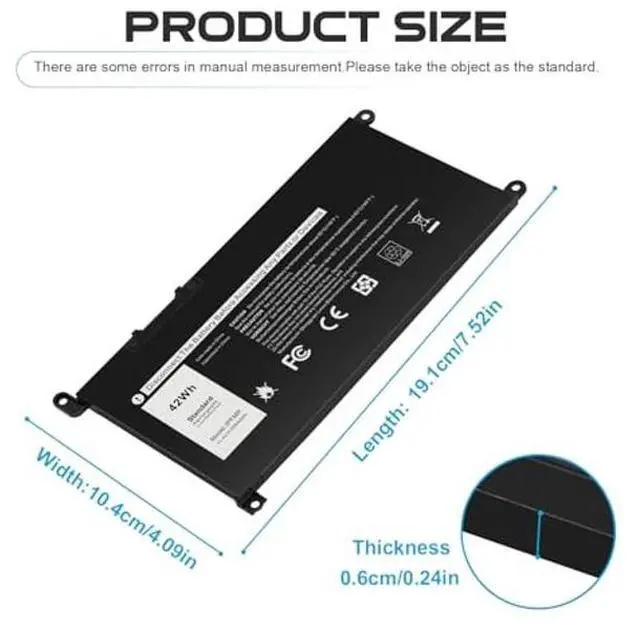 Capacity: 42Wh; 100% brand new from manufacture. Grade A cells ensure fast charges and low power consumption.