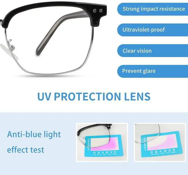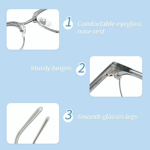 material: alloyDue to the prolonged use of electronic devices by modern people, the impact of blue light on eye health is also a growing concern. Scientific studies have shown that prolonged exposure to blue light may lead to an increased risk of myopia. Therefore, wearing these glasses can help reduce the risk of myopia and maintain eye health. Prolonged use of electronic products, such as cell phones, tablets and TVs, can easily lead to eyestrain, dryness and insomnia, so wearing these glasses can effectively relieve this discomfort.